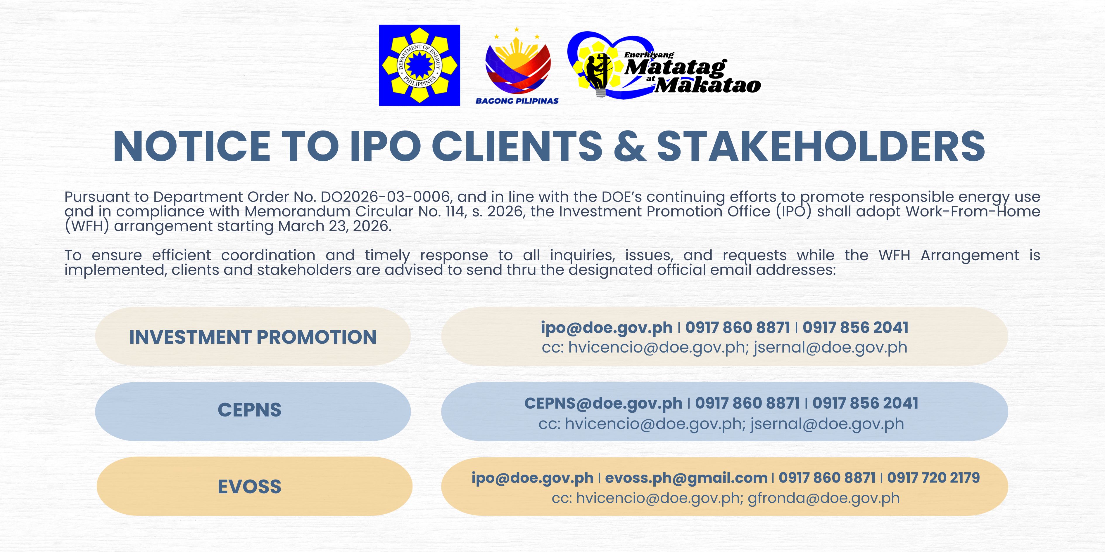 NOTICE TO IPO CLIENTS & STAKEHOLDERS